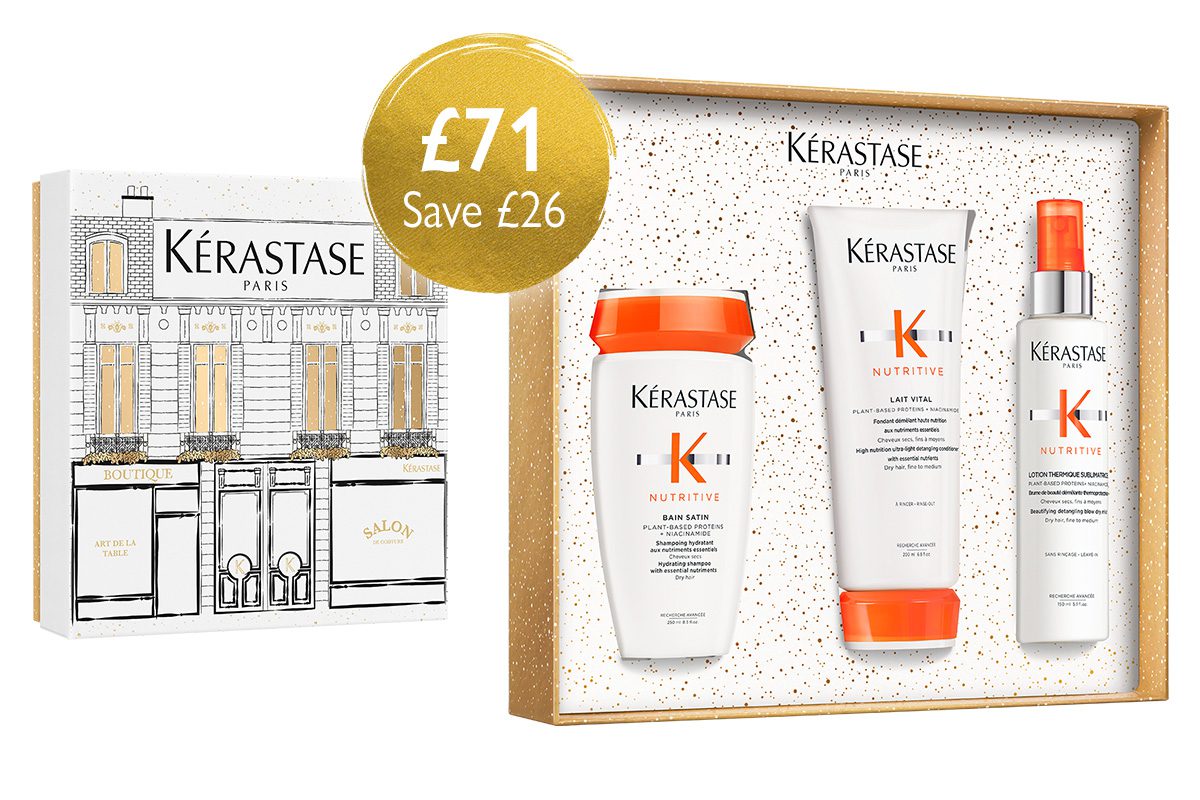 If your hair feels dry, coarse or rough to the touch, the Kérastase Nutritive Gift Set is designed to deeply nourish and soften every strand. Enriched with plant-based proteins and niacinamide, it replenishes essential moisture and restores smoothness, making hair more manageable and beautifully shiny. This set is perfect for anyone who frequently uses heat tools or whose hair is naturally dry and in need of extra care.